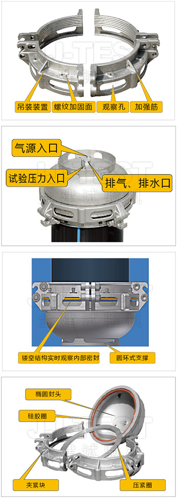 在保證強度的情況下體現為質量輕,易于搬運及組裝操作,同時在加壓過程中可對封頭內部密