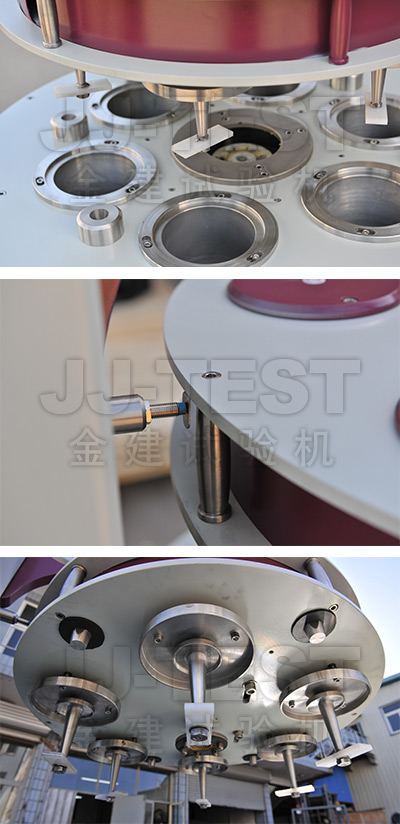 本儀器設置了6個實驗工位,一次實驗可同時做6個試樣,各工位連接采用同步帶傳動,與主軸電機轉速